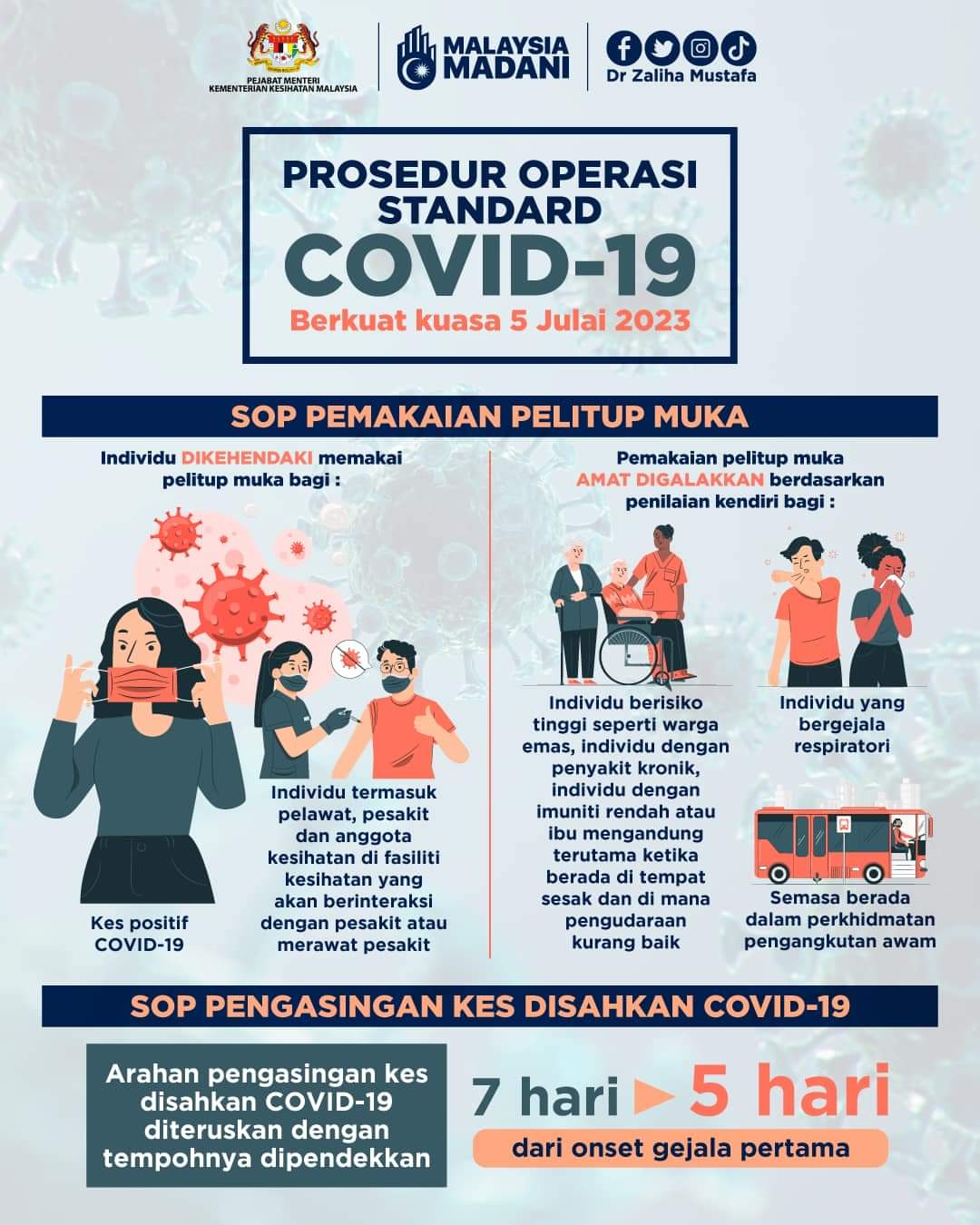 The SOP for the use of face masks and the procedure for isolating confirmed Covid-19 cases will take effect from July 5, 2023.