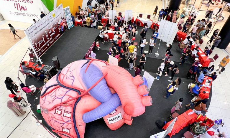 Perak Community Specialist Hospital (PCSH) kick started World Heart Day 2023 (September 29) by having an early awareness campaign. PCSH had a 26-foot replica of the human heart on display at AEON Station 18 from September 2 to 3, whereby the public could take a guided interactive walk-through inside the vital organ to comprehend how the human heart works. Once visitors step inside the heart, they are able to learn about cardiovascular functions and observe examples of various heart diseases.