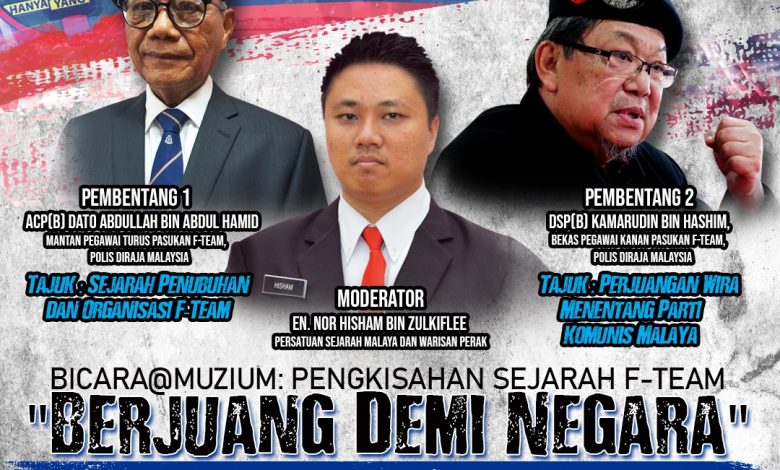 TAIPING – The Perak Museum invites the public to attend a Museum Talk session: “Narrating the History of F-Team’s Struggle for the Nation.”