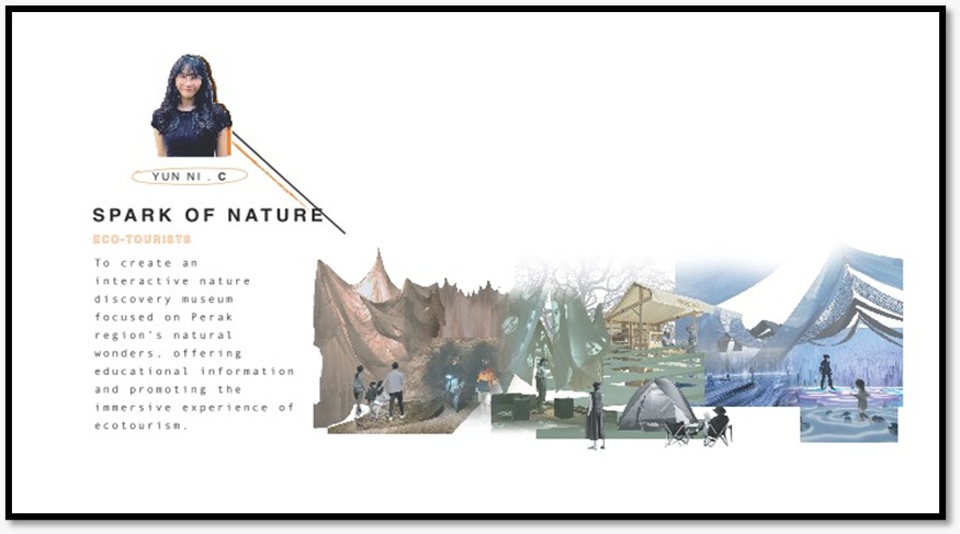 Spark of Nature by Chang Yun Ni: Chang’s project, “Spark of Nature,” is an interactive nature discovery gallery in Ipoh. It encourages outdoor activities, enhances visitors’ journeys through immersive spaces, and utilises technology to engage with its audience.
