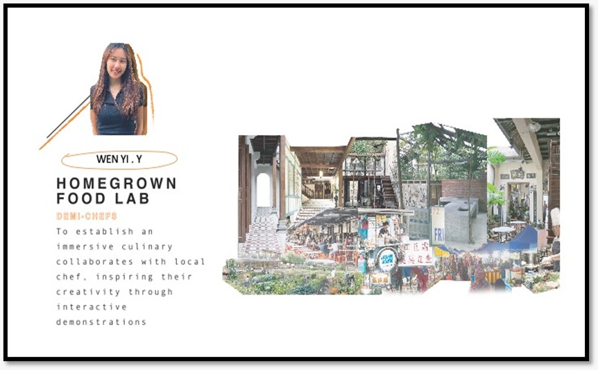 Homegrown Food Lab by Yong Weng Yi: Yong’s “Homegrown Food Lab” is an educational and interactive food lab that collaborates with local chefs to inspire creativity through live culinary demonstrations.