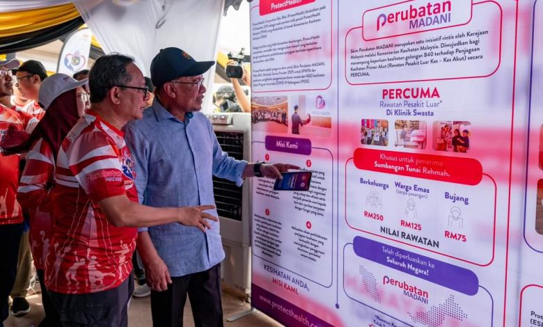 IPOH: Prime Minister, Datuk Seri Anwar Ibrahim, today launched the Madani Medical Scheme and the National Madani Afiat Program 2023 at Sultan Azlan Shah Roundabout here.
