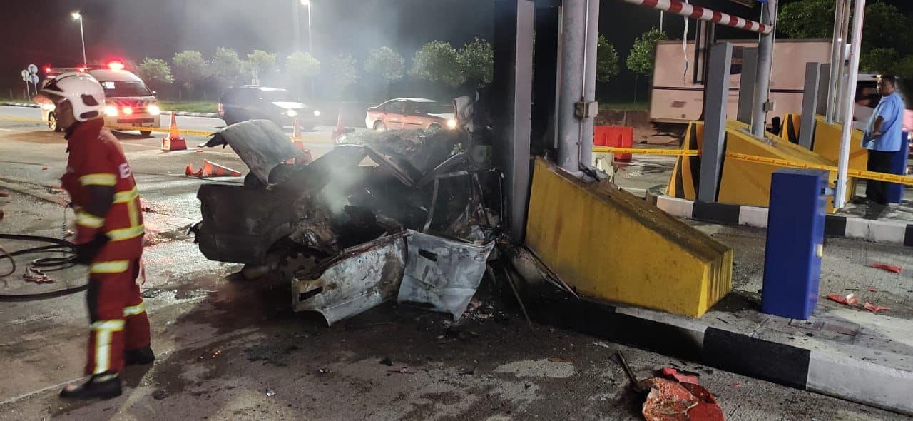MANJUNG: An unidentified victim was killed after the car they were driving crashed into a toll divider and caught fire on the West Coast Expressway (WCE) in Sitiawan late last night.