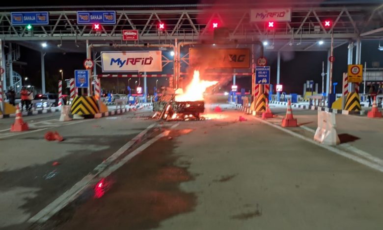 “When our team arrived at the location, they found a Toyota car completely burned, 80 percent destroyed due to crashing into the toll divider.