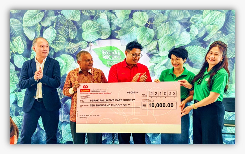 But the true heroes of the day wasn’t just about green products; it was about green hearts. ReadyCare Signature showcased its dedication to community welfare by presenting a RM 10,000 donation to the Perak Palliative Case Society.