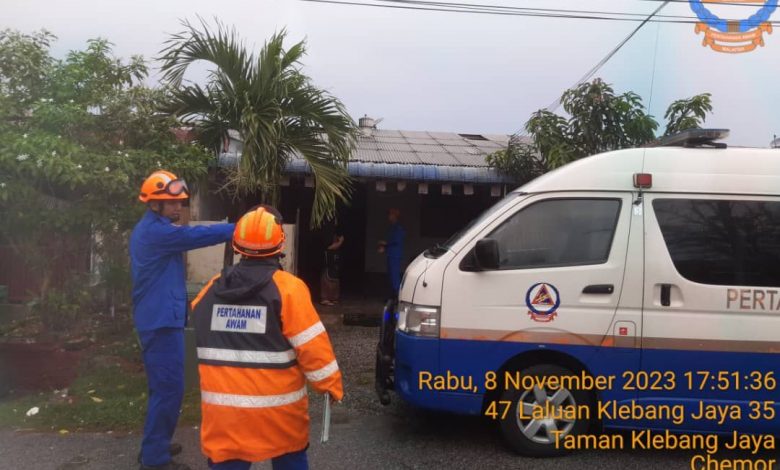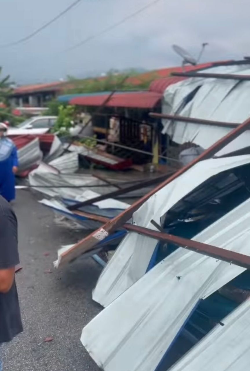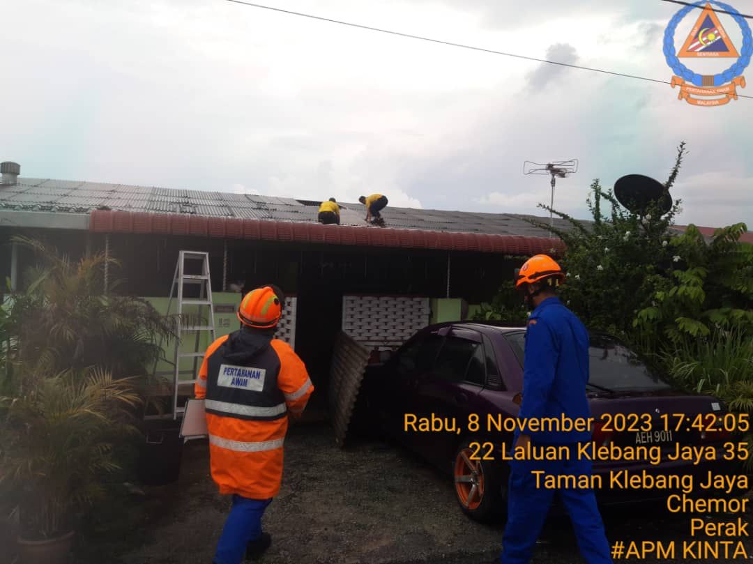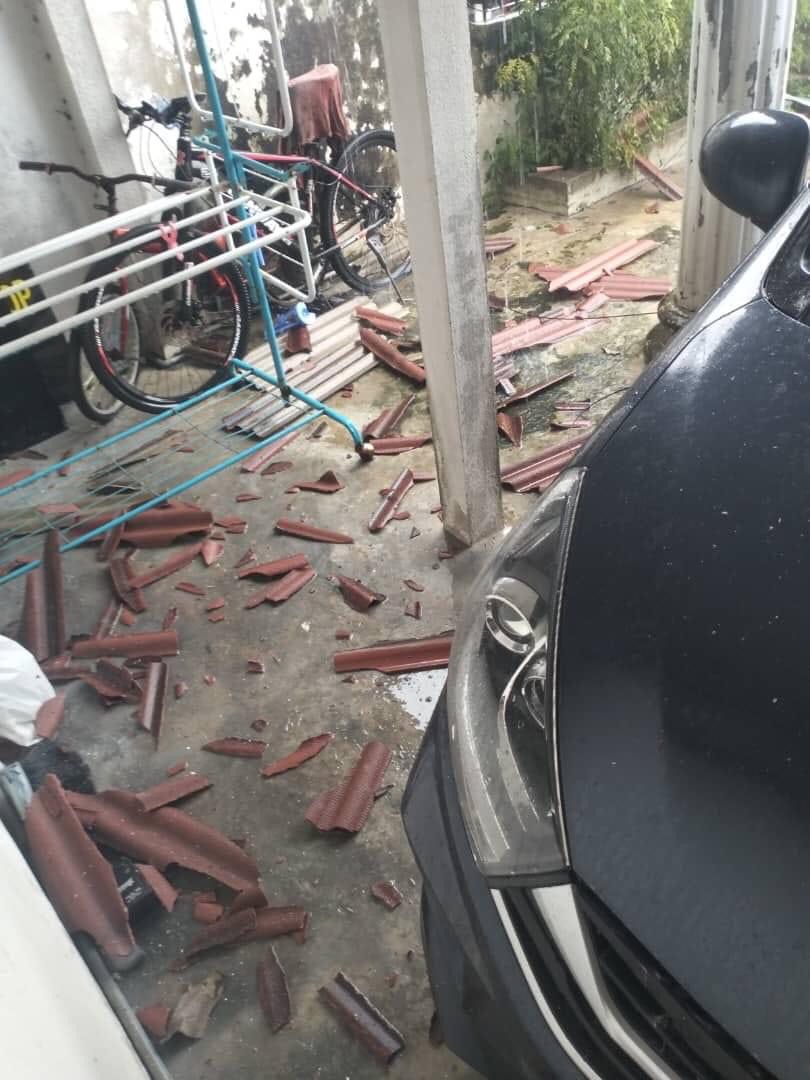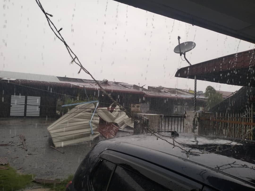 “The continuous heavy rain for over two hours, along with the storm, has caused damage to houses in the Klebang Jaya area.