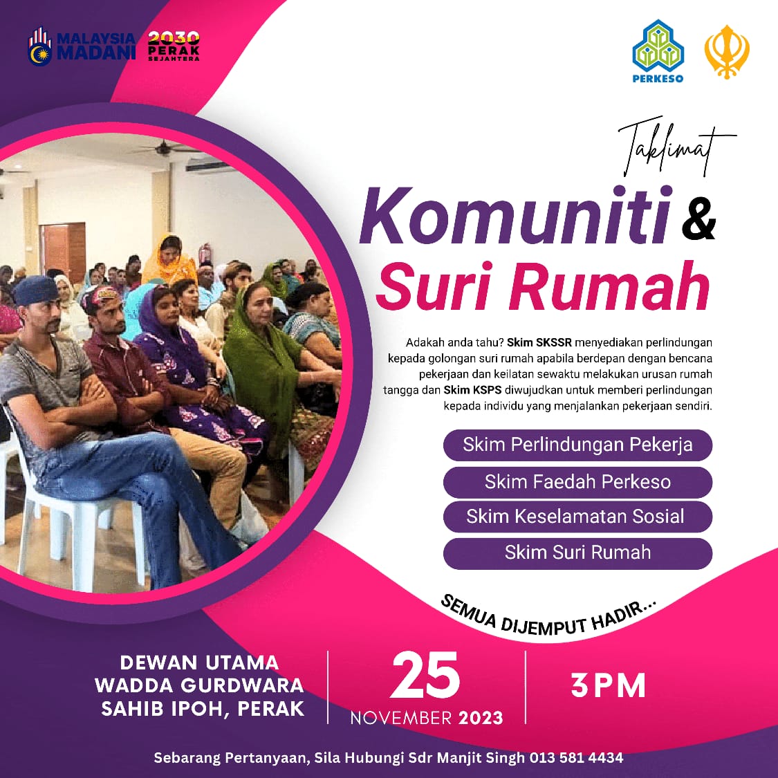 There will be a briefing tomorrow for the Sikh community, to inform and educate them on the various schemes from the Social Security Organization (SOCSO), also known as Pertubuhan Keselamatan Sosial (PERKESO), such as the: