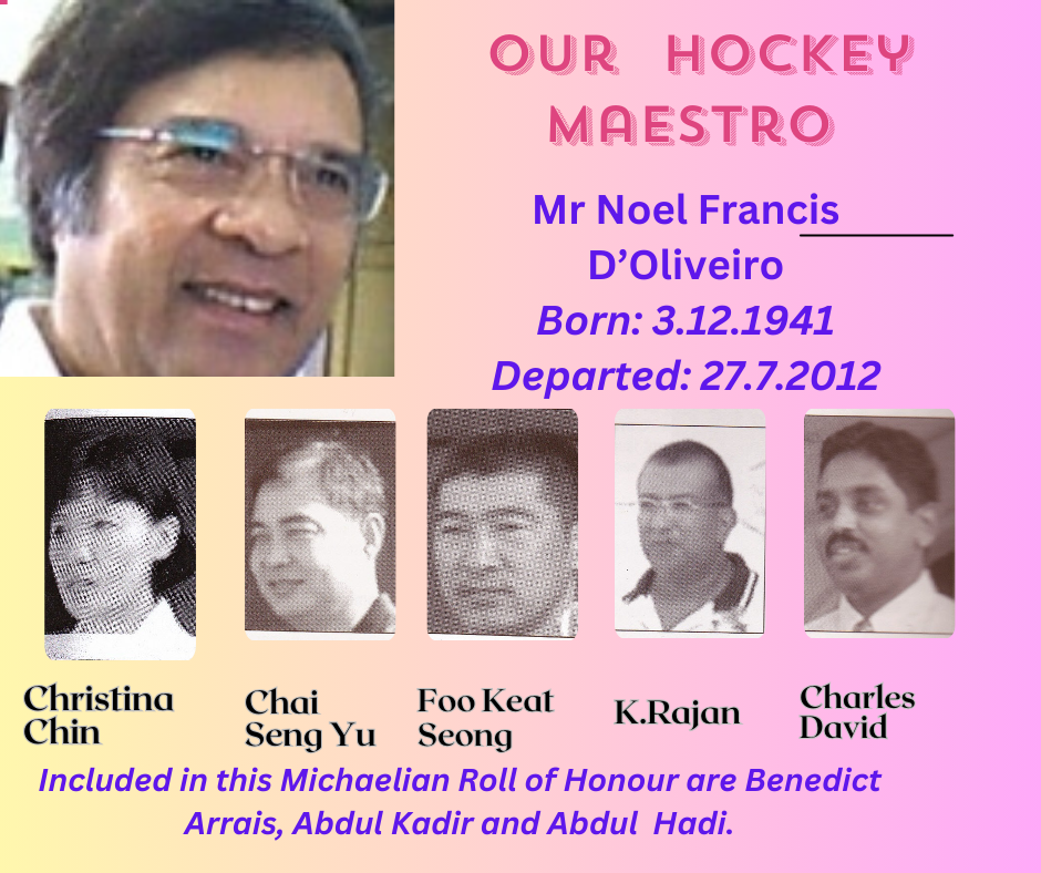 Master Noel Francis d’Oliveiro in the 1960s to 1990s was the hockey Master at St Michael’s who nurtured world class hockey players for Malaysia.