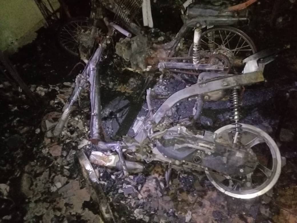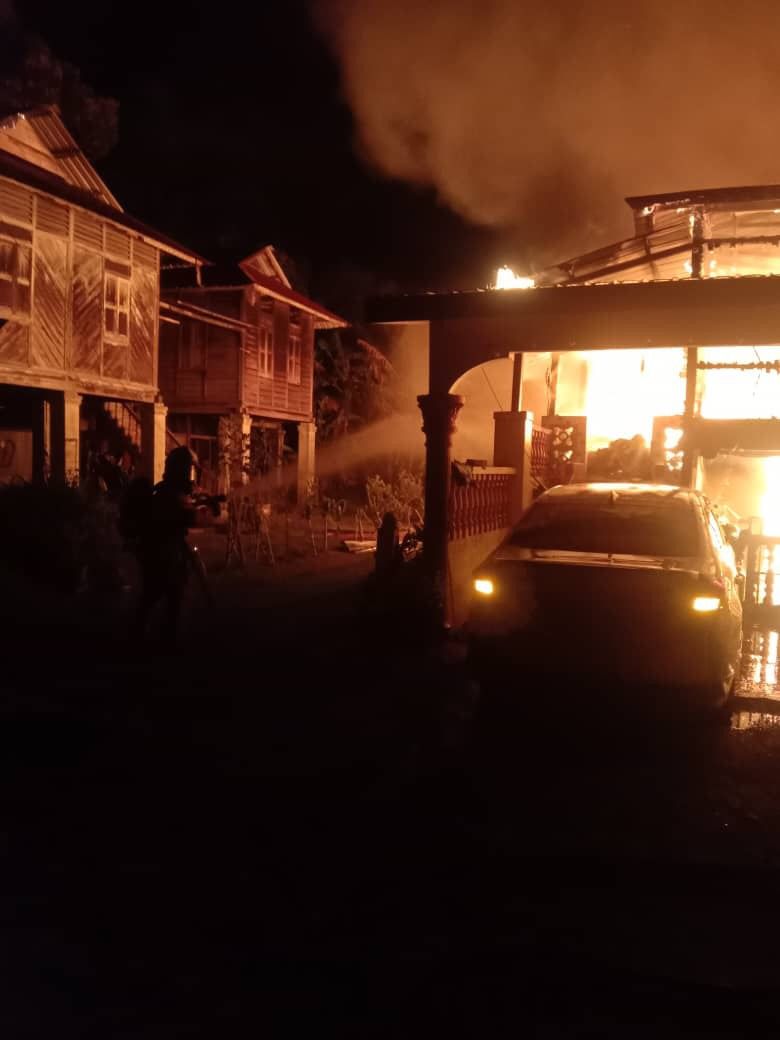 PASIR SALAK: A house along with a car and three motorcycles were destroyed in a fire early morning today in Kampung Selat Pulau, Kampung Gajah, here.