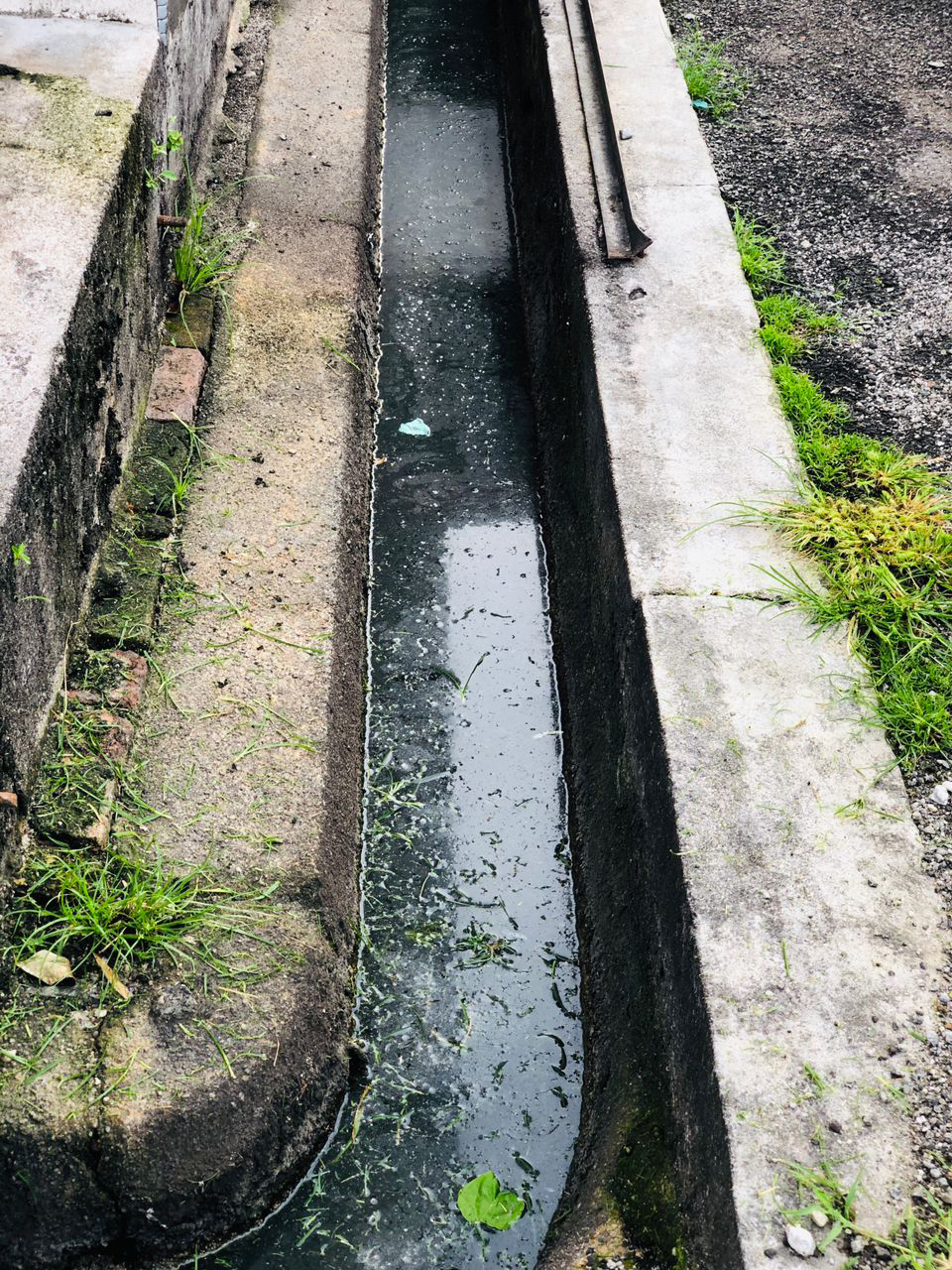 The condition within the drainage system appears to pose a risk of breeding mosquitoes if not properly maintained.