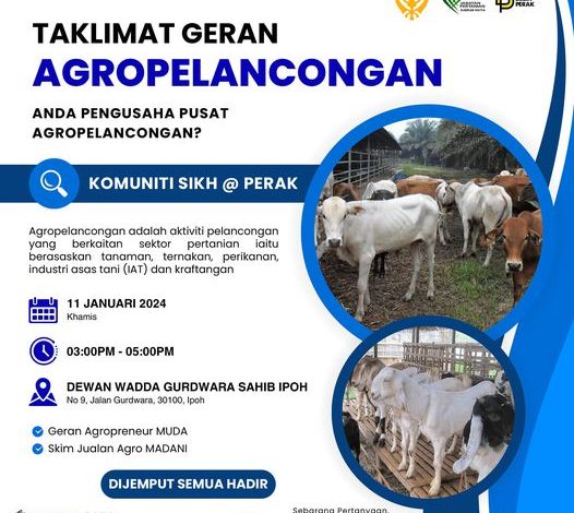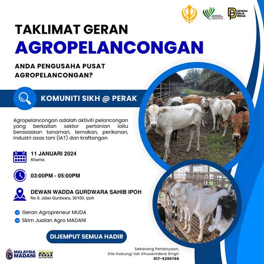 For those agropreneurs who are involved in agrotourism, there will be a briefing on various agrotourism grants on January 11 from 3 pm to 5 pm. The venue will be the Dewan Wadda Gurdwara Sahib Ipoh located at No 9, Jalan Gurdwara, 30100, Ipoh.