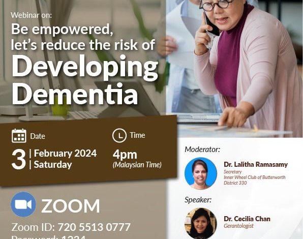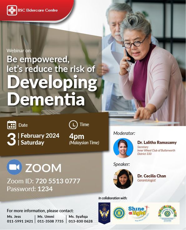 BSC Eldercare Centre, are organising a webinar with the topic of “Be empowered, let’s reduce the risk of developing dementia” via a Zoom session on February 3 at 4 pm.