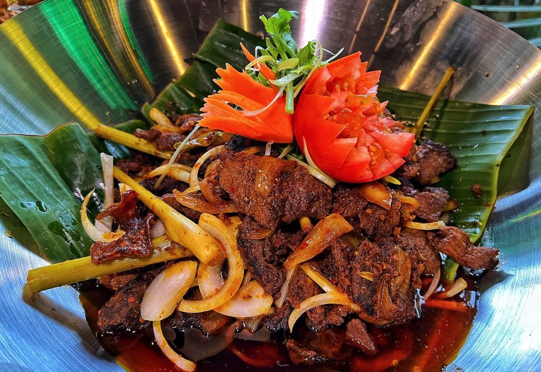 The rustic flavours are heightened with fresh ulam-ulaman (salad), including ulam raja and kacang kelisa accompanied by Sambal Belacan and Sambal Tempoyak (fermented durian). Various salad choices, such as Kerabu Daging Pucuk Paku and Kerabu Sotong, consistently draw the attention of diners.