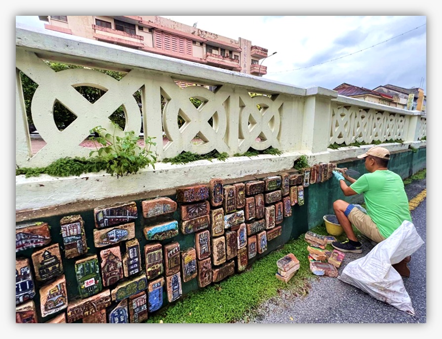 Moreover, painting these recycled bricks serves as a creative outlet for students and community members alike, specifically focusing on depicting old shop lots. Each painted brick becomes a canvas, telling a story of Ipoh’s past, present, and future. By highlighting old shop lots, the initiative aims to connect the present younger generations with their past, bridging the gap between history and modernity.
