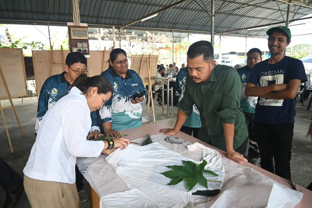 This eco-print batik is a sustainable tourism product introduced in conjunction with the Visit Perak Year 2024 in the Manjung region.