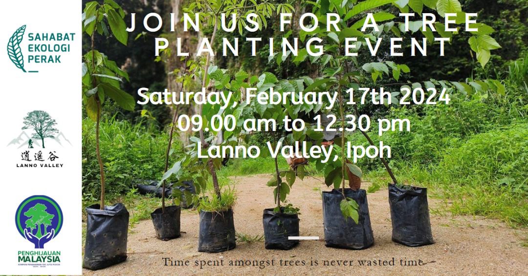 On 17 February, from 9 am to 12.30 pm, there will be a tree planting event alongside Sahabat Ekologi Perak. Light refreshments will be provided for the participants.