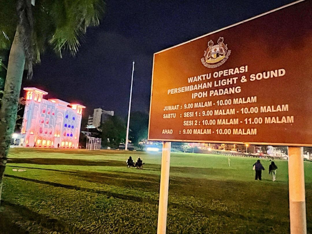 “For two months, during the Visit Perak Year 2024, the ‘content’ hasn’t changed, and the display still appears incomplete. Also, on the notice board, it says the show starts at 9:00 PM, but it only begins at 9:20 PM,” she told Ipoh Echo/Peraktastic when asked to comment after the Ipoh Light & Sound display at Ipoh Padang last night.
