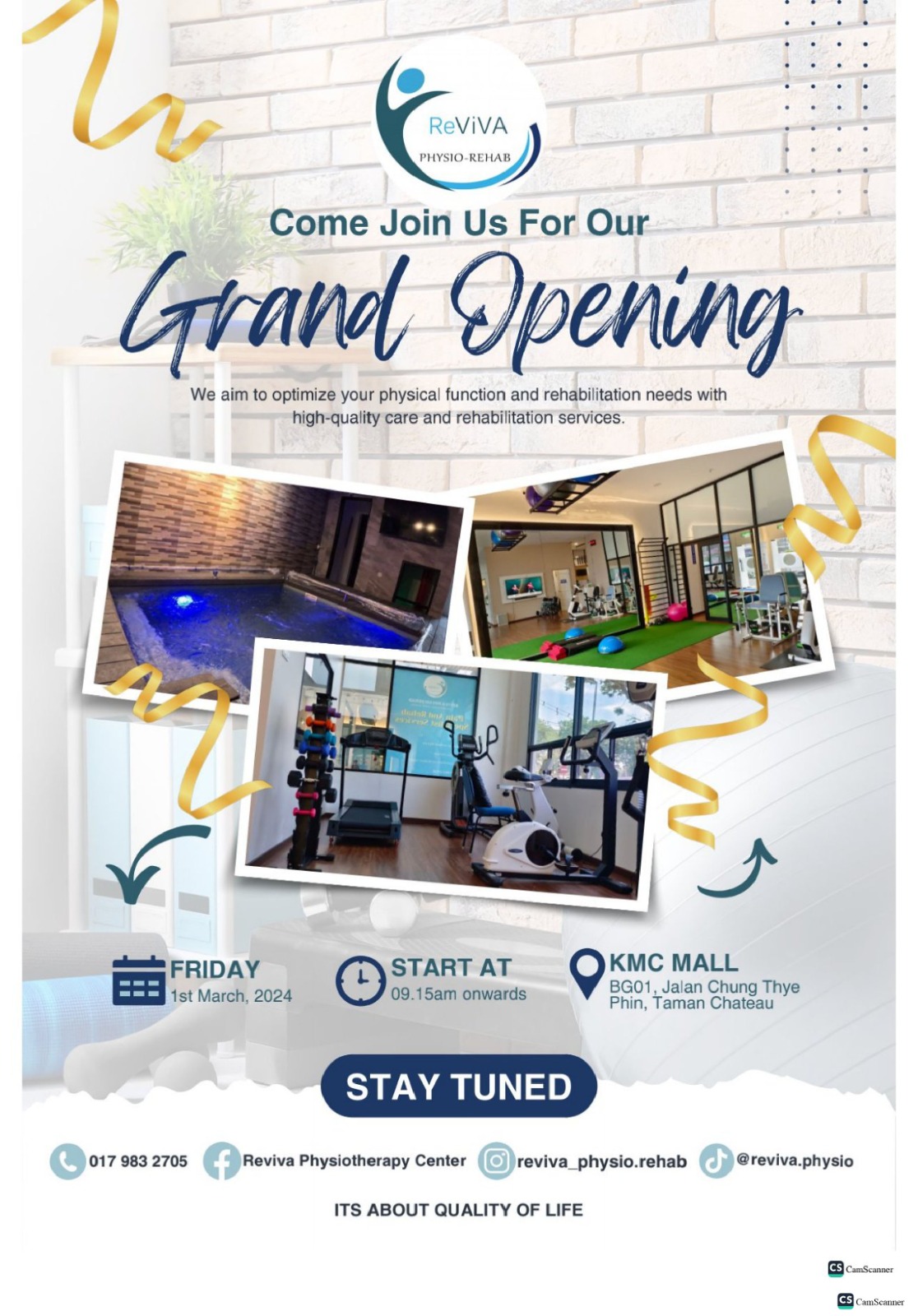 ReViVA Physio-Rehab are about to have their grand opening this Friday, March 1., starting from 9.15 am onwards.  The physiotherapy center is located at KMC Mall at BG01, Jalan Chung Thye Phin, Taman Chateau.