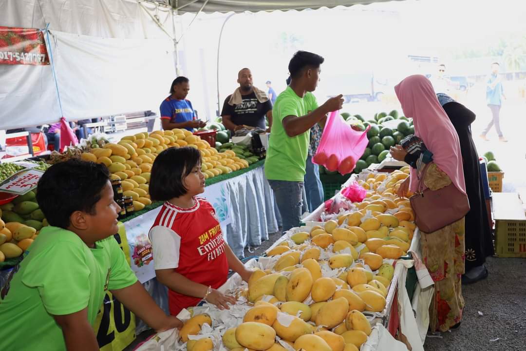 Local fruit festival features promotional sales of fruits such as Bali lime, lohan guava, MD2 pineapple, and others from various areas in Malaysia.