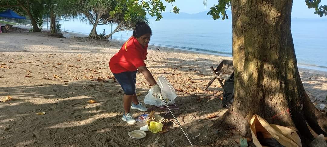 This beach cleaning program involves 45 members of the Rotary Club from Sitiawan, Ipoh, and Johor together with JKP Zone 14.