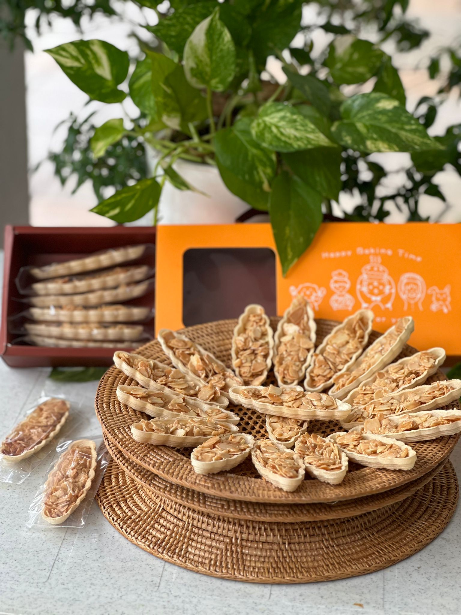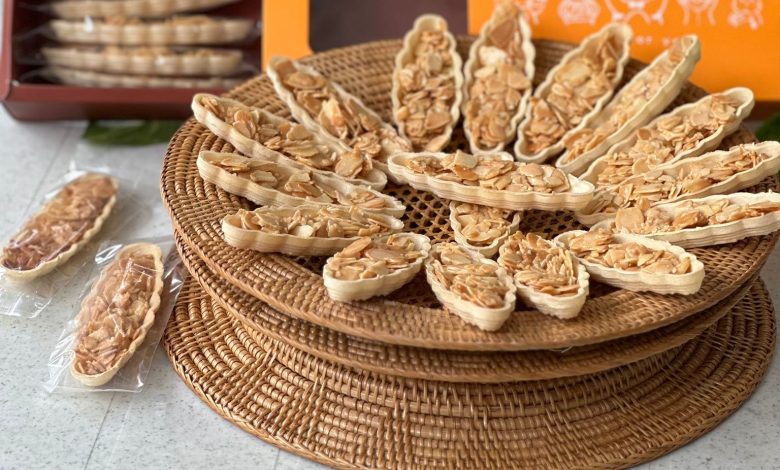 - Preheat the oven to 140°C and spread almond flakes on a baking sheet. Bake for 10 minutes, then set aside to cool.
