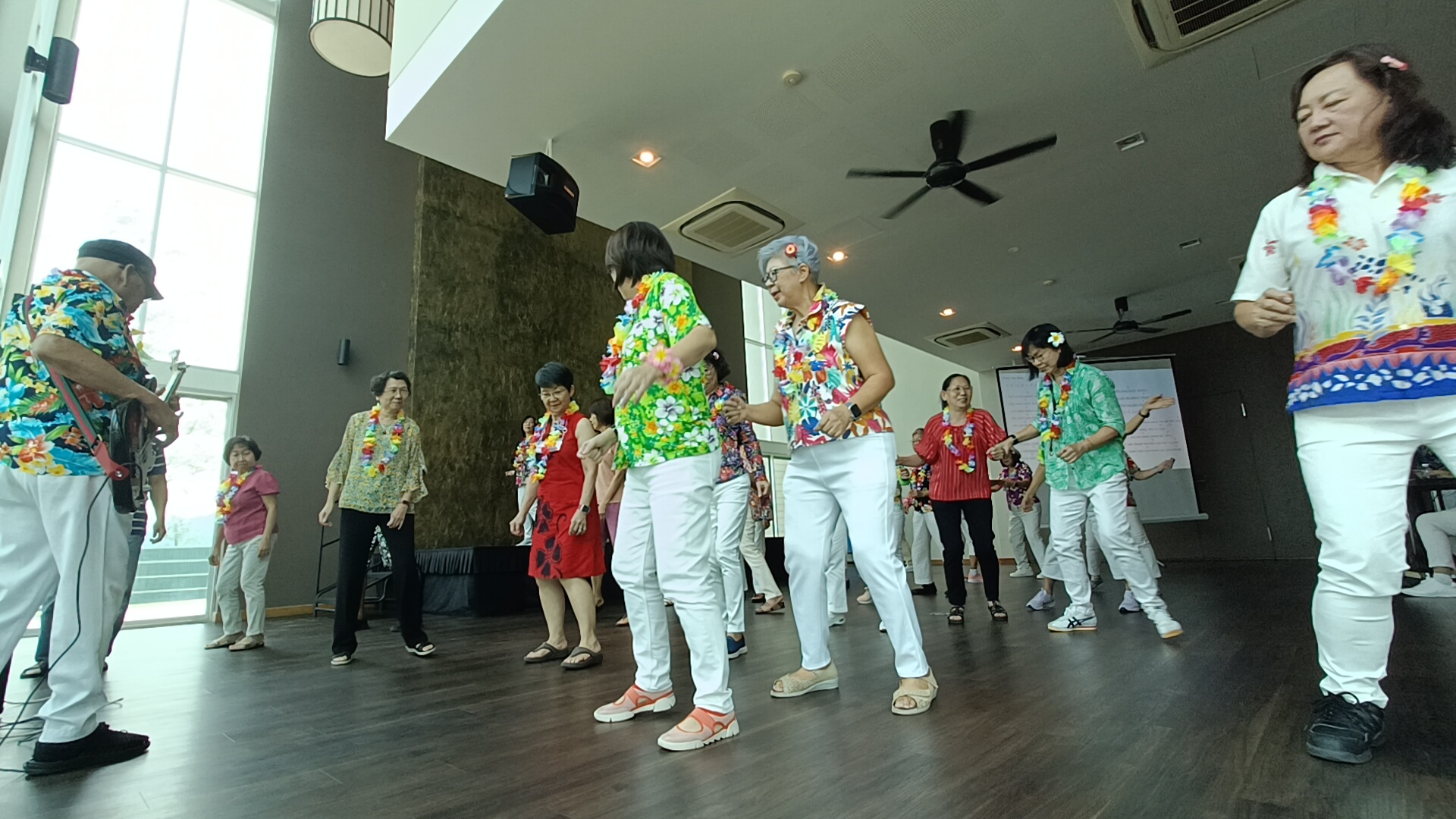 Dressed in colourful Hawaiian style attire, they performed for the over 30 residents of GreenAcres who attended, in a lively session with sing-along and dancing.