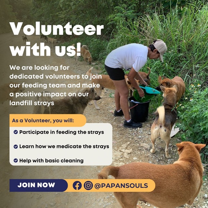 PapanSouls actively seeks volunteers from Tuesdays to Fridays, with feeding times scheduled between 3:30 PM to 7:30 PM. New volunteers will receive guidance from seasoned volunteers to support them on their mission.