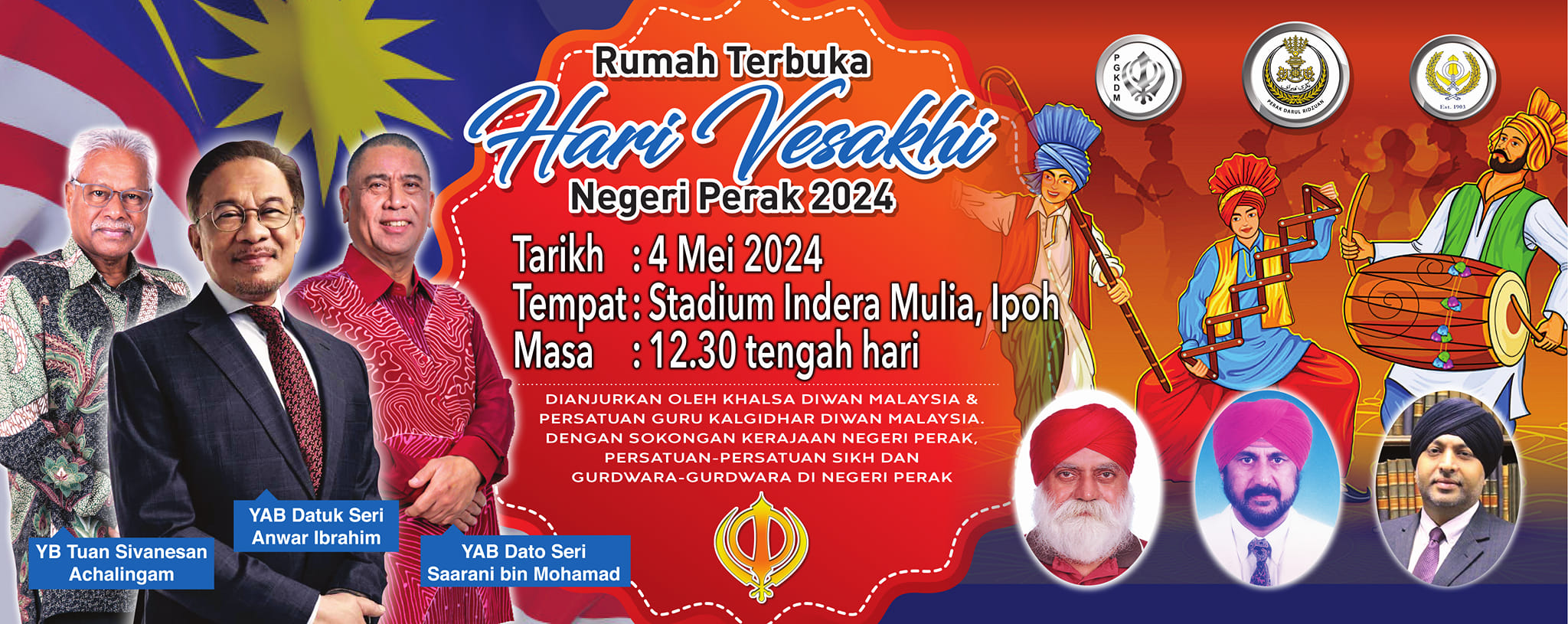 An open house will be held at Stadium Indera Mulia, Ipoh, in commemoration of Vesakhi Day at the state of Perak level. The open house will take place on 4 May, at 12.30 pm onwards.