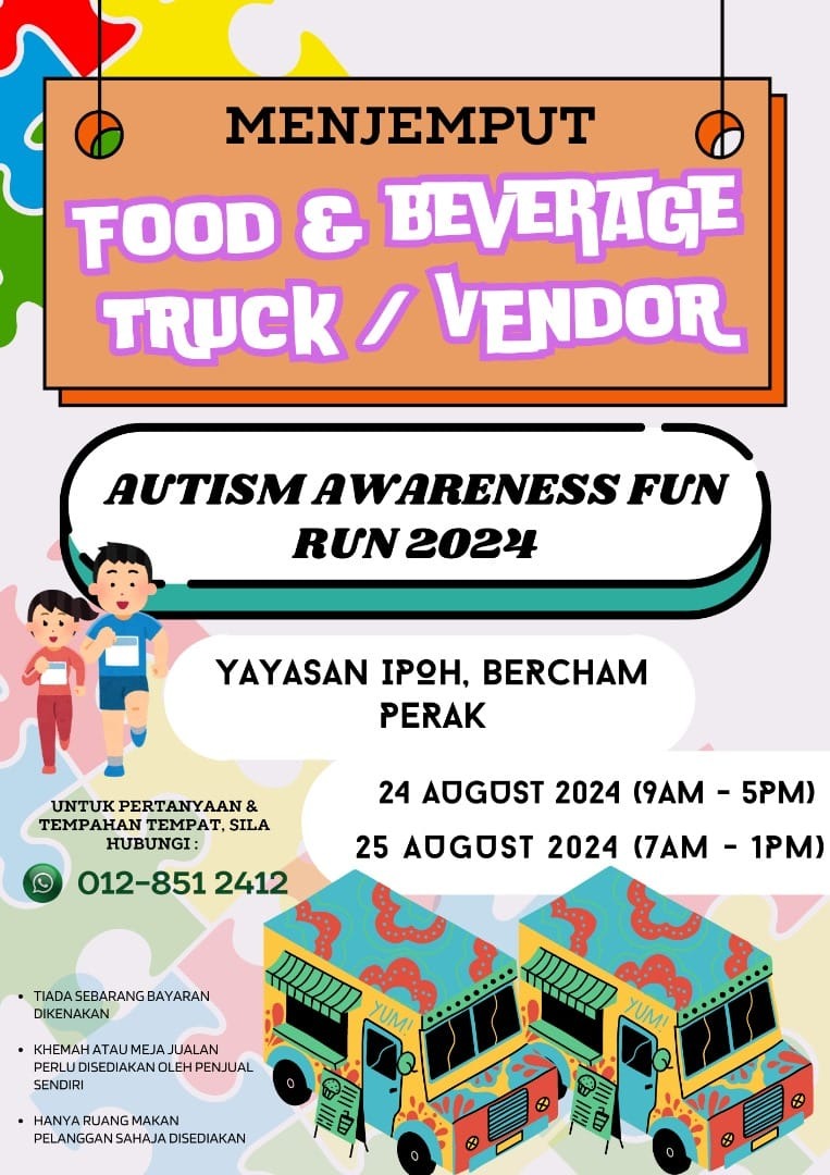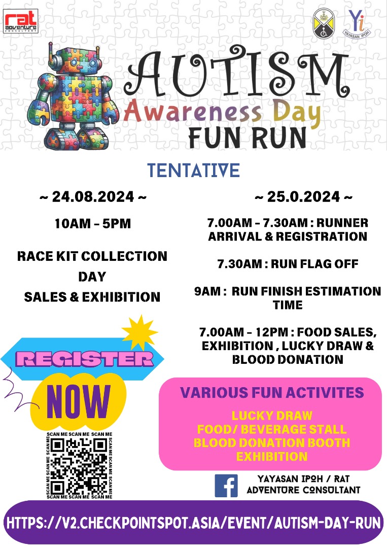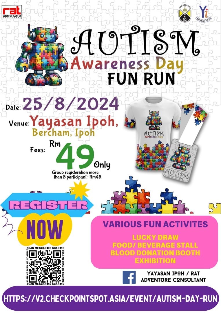 In support of autism awareness, Yayasan Ipoh are organising an Autism Awareness Day Fun Run event, which will take place on August 24 (9 am to 5 pm) and 25 (7 am to 1 pm).