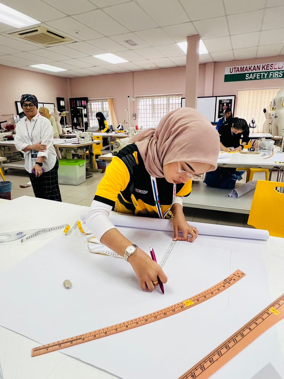 In this competition, all participants had to complete two assigned tasks: technical drawing and pattern design.