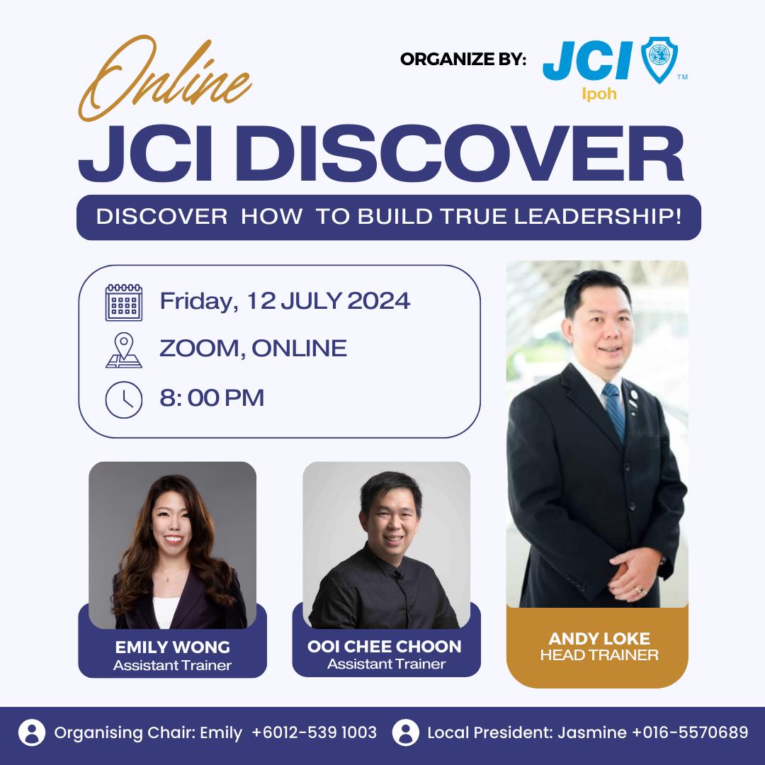 A JCI Discover course will be held on July 12 at 8 pm. It will be a Zoom meeting, limited to only 30 seats. Participation is free of charge.