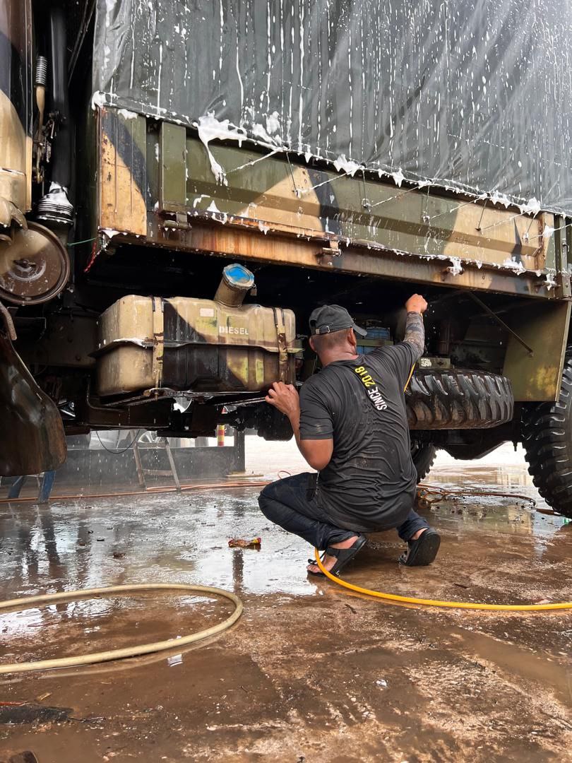 He said the car wash offers around 15 types of services, including washing military vehicles.