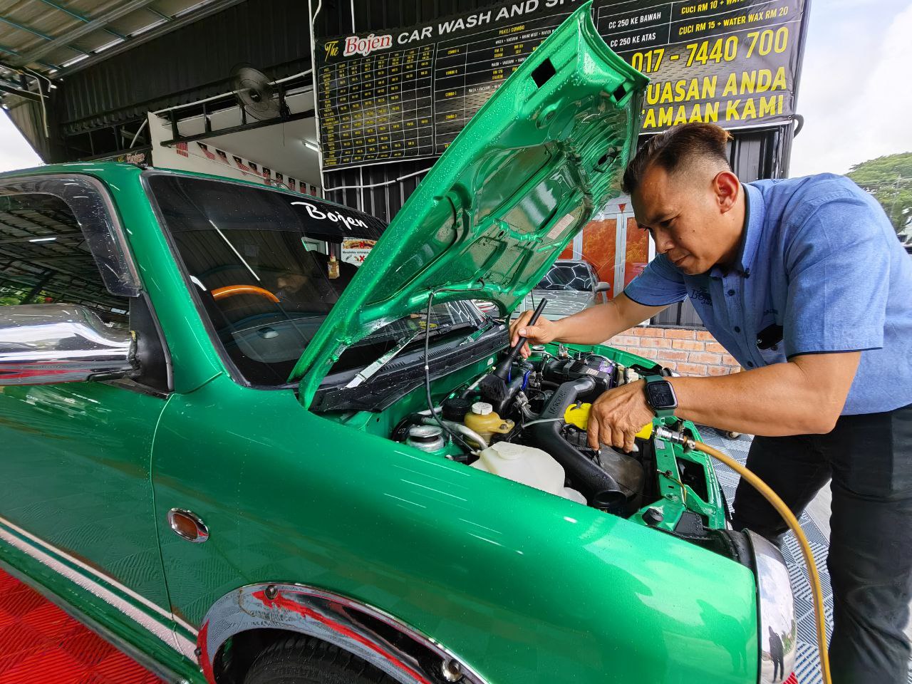 “For vehicle washing, it’s only RM15, and for three-layer polishing, we charge only RM180.
