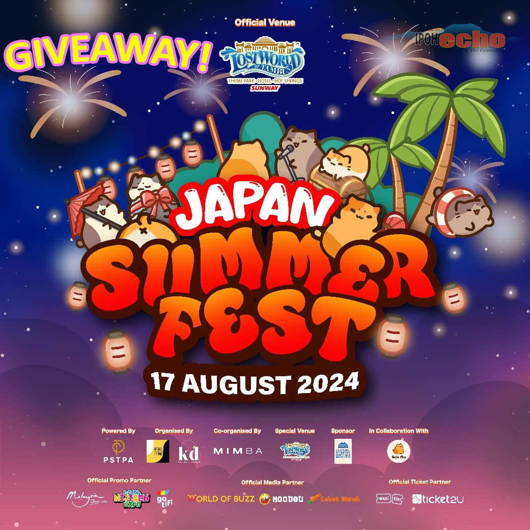 In conjunction with Ipoh Festival 2024’s Japan Summer Fest, Ipoh Echo are giving away one ticket each, to five lucky winners to attend the Japan Summer happening at the Lost World of