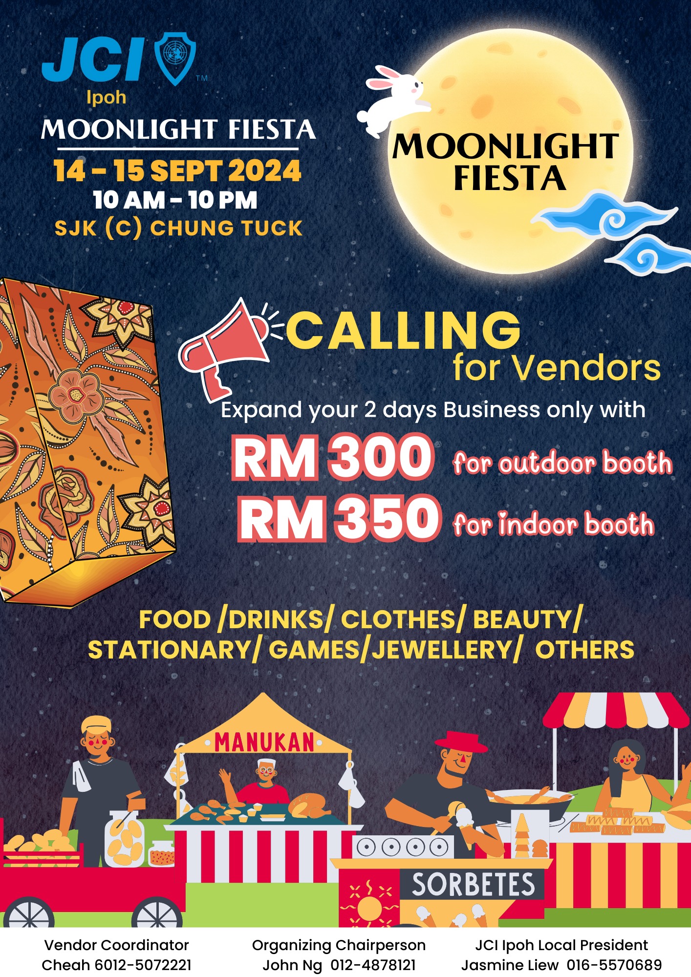 Junior Chamber International (JCI) Ipoh, announced that it will be holding the Moonlight Fiesta event on September 14 and 15, from 10 am to 10 pm, at SJK (C ) Chung Tack, Simee.