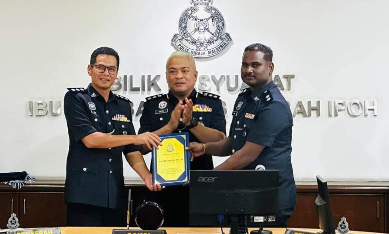 The handover was witnessed by the Ipoh District Police Chief, Assistant Commissioner Abang Zainal Abidin Abang Ahmad.