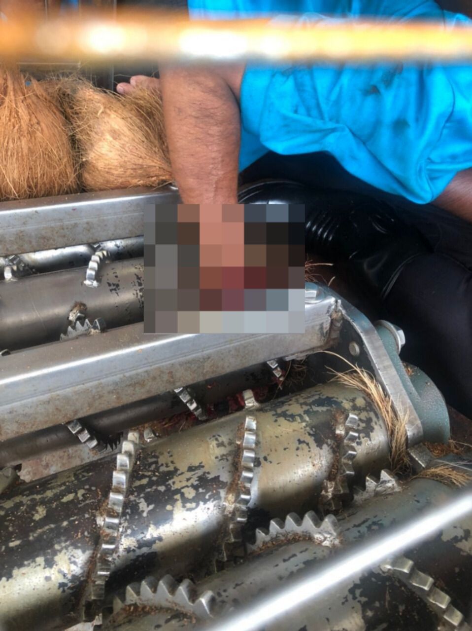 “It is understood that the worker’s hand became trapped in the coconut husk removal machine while performing his daily work routine at the factory.