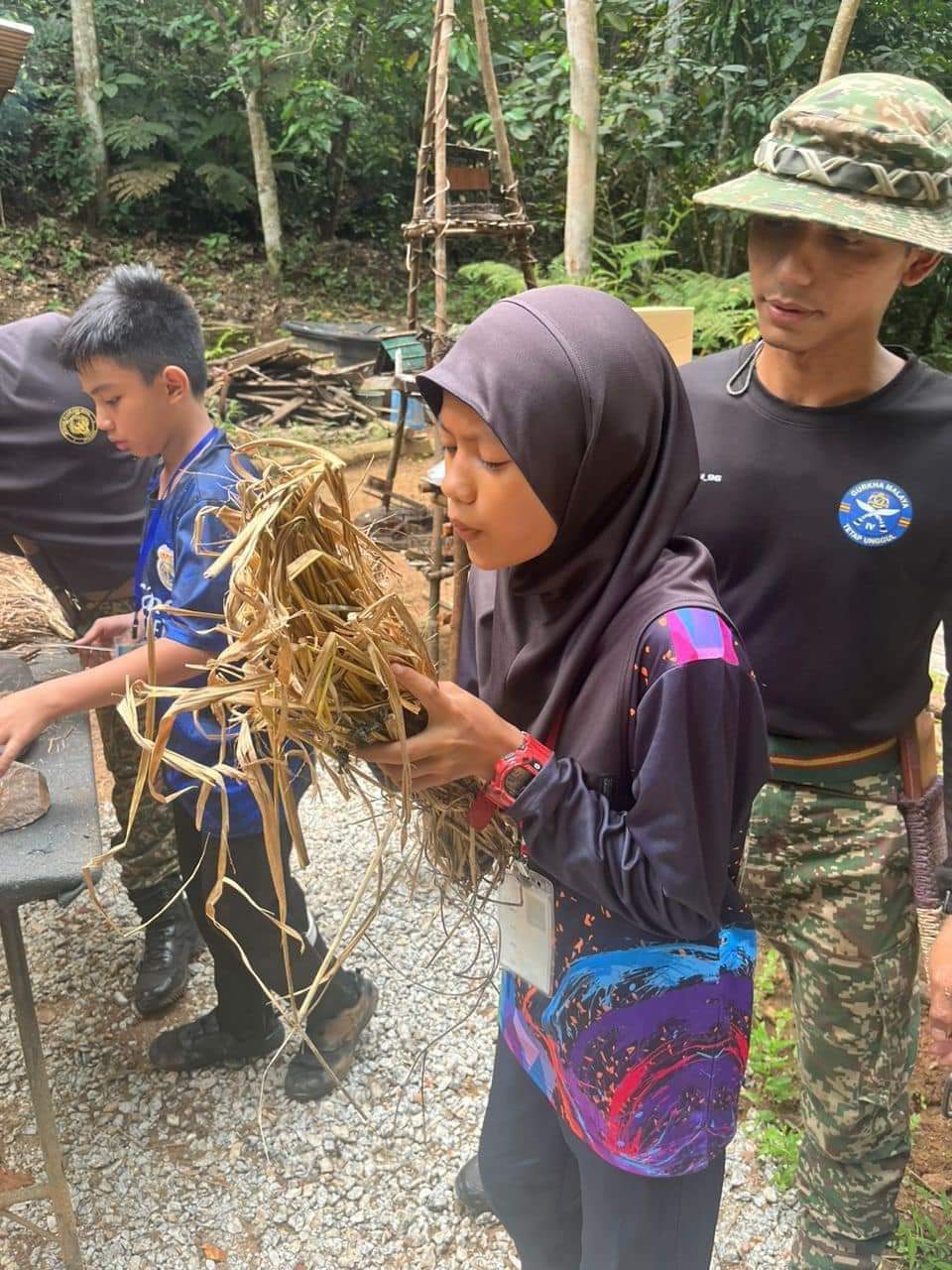 Various activities were held, including camp orientation, ice-breaking sessions, obstacle courses, jungle trekking, basic survival knowledge, log relay, and night reconnaissance.