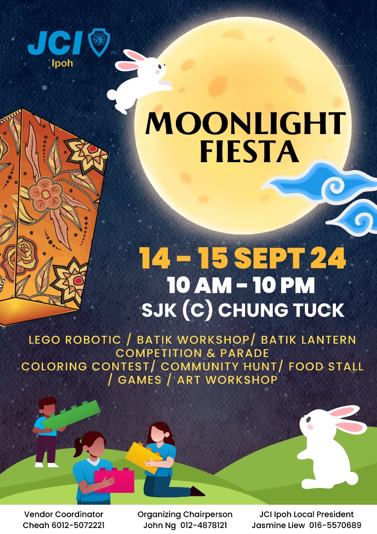 John Ng, Chairman of the Junior Chamber International, Ipoh (JCI), said that the Moonlight Fiesta is being organised in conjunction with Malaysia Day and the Mid-Autumn Festival to foster goodwill among the country’s three major ethnic groups: Malay, Chinese, and Indian.