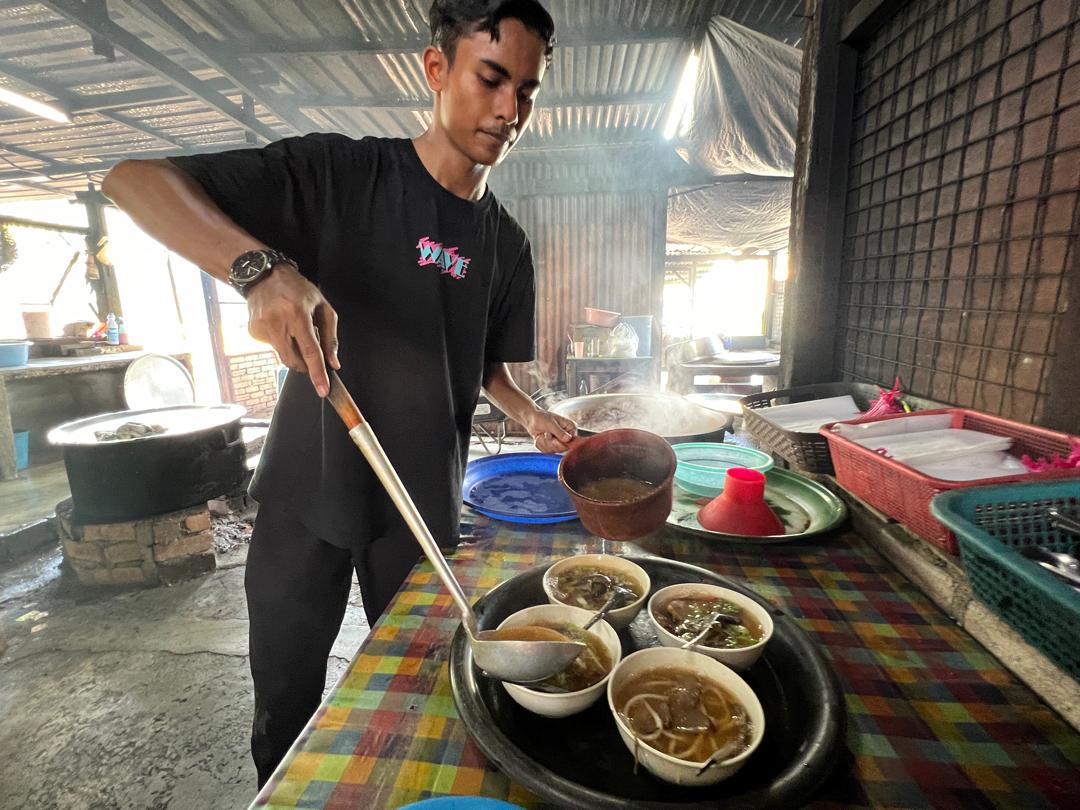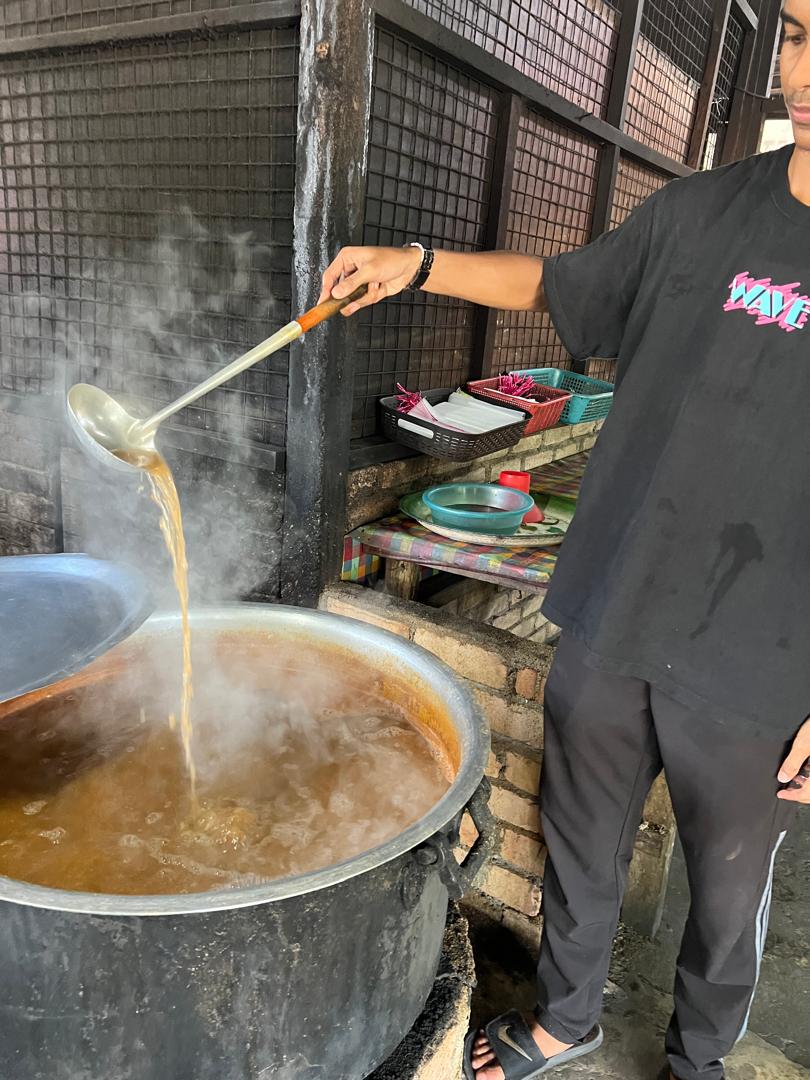 The laksa gravy is also traditionally cooked using a wood-fired stove, combining several types of seafish. The smoky aroma from the wood fire adds a distinctive flavour that customers love.