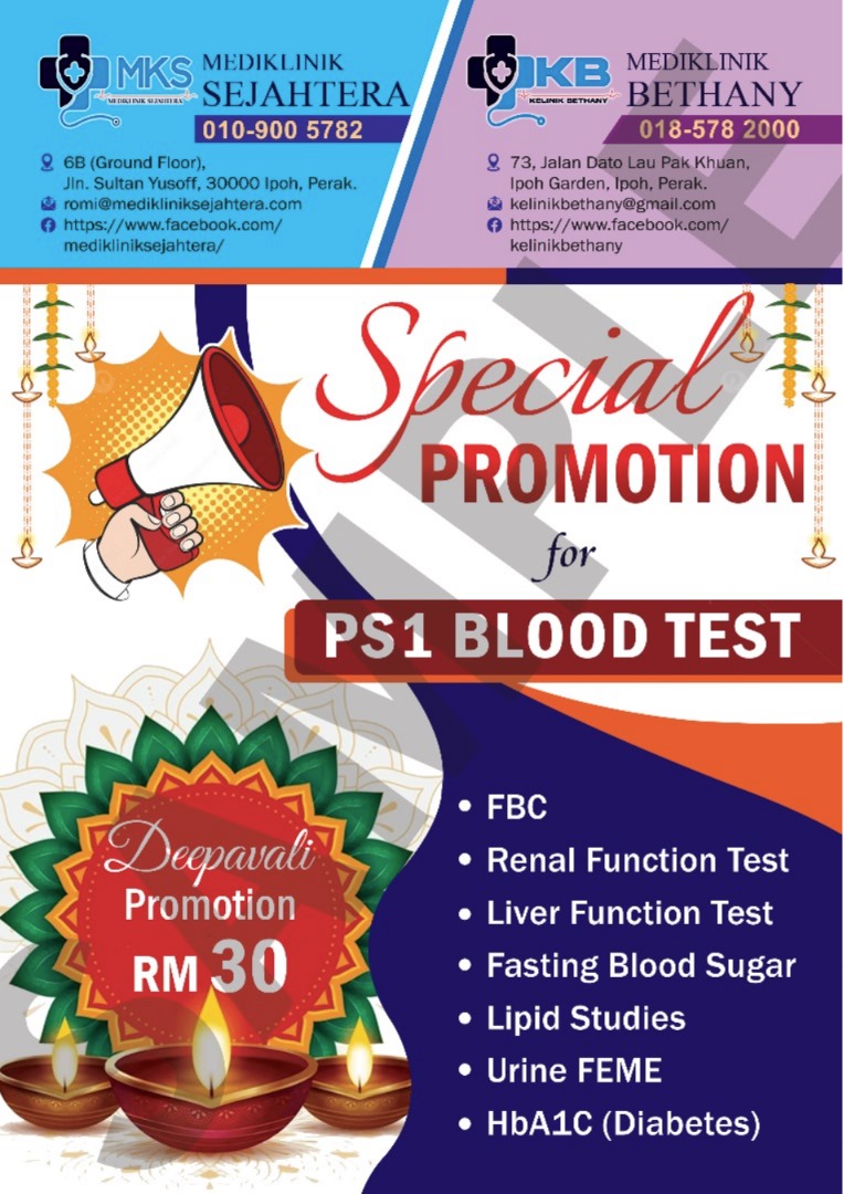 We are Launching a special rate on blood tests in conjunction with the Deepavali