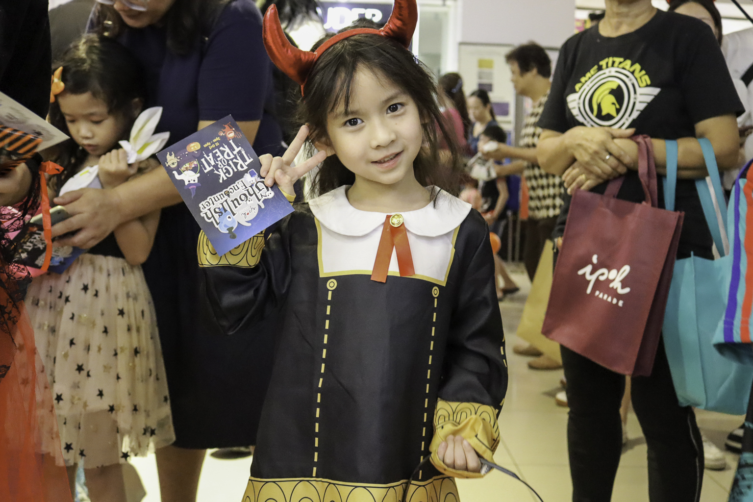 Dressed in their best Halloween costumes and armed with pumpkin baskets or Ipoh Parade shopping bags, the children enthusiastically shouted “trick-or-treat” as storekeepers handed out goodies.