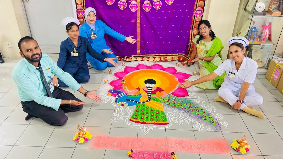 “In addition to boosting the morale of staff and patients, the rangoli kolam represents a beautiful art form involving vibrant colors.