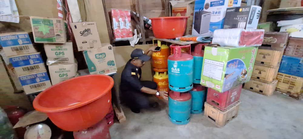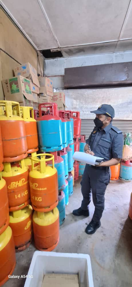 “The seizure involved 104 units of LPG cylinders, 19 bottles of cooking oil, 40 kg of packet cooking oil, 132 kg of raw sugar, and 396 units of wheat flour, with an estimated total value of RM10,935.70,” he said today.