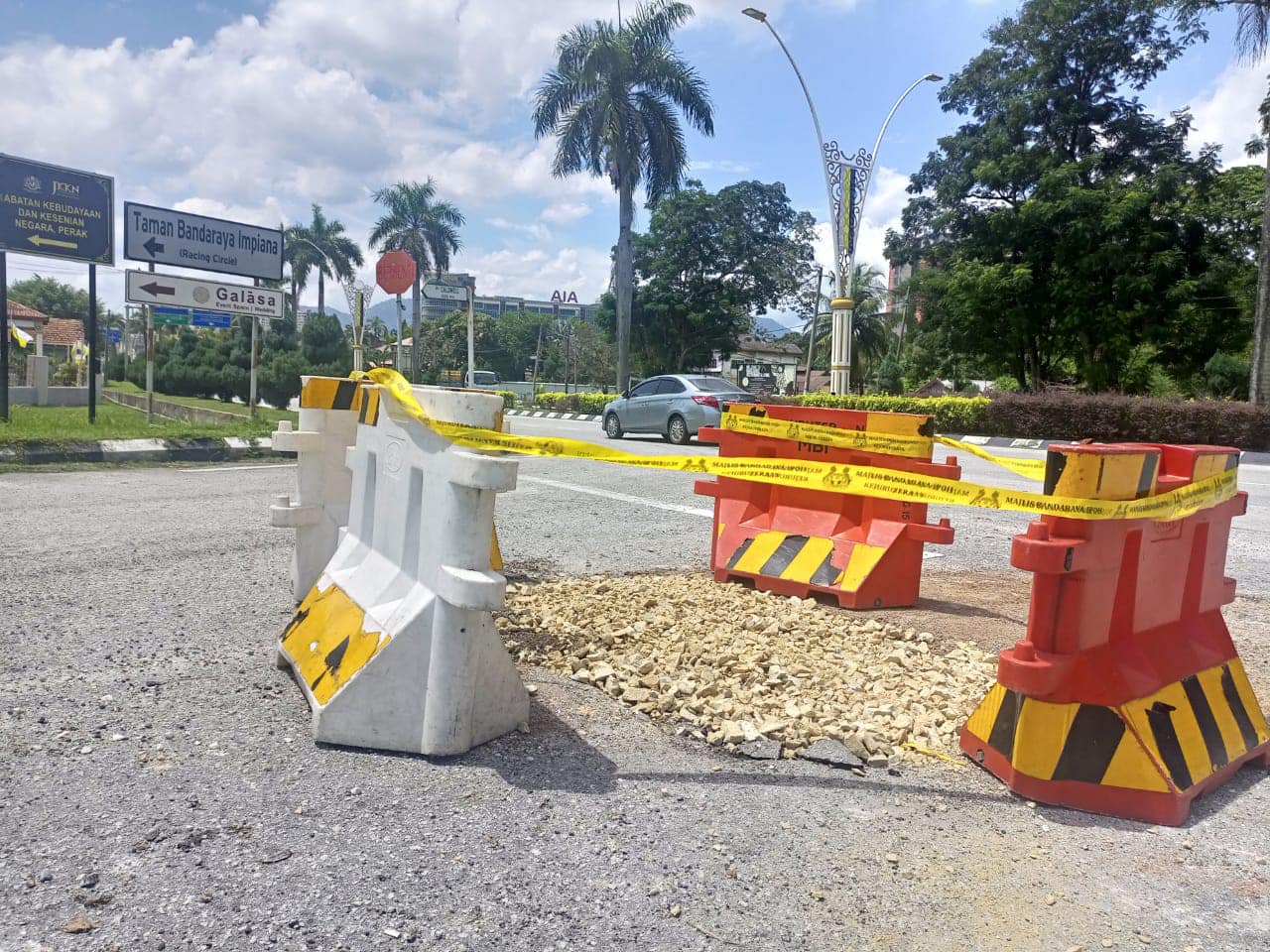 The sinkhole on Caldwell Road near the three-way junction leading to the Perak State Public Library, which was previously filled with sand, has now been paved.