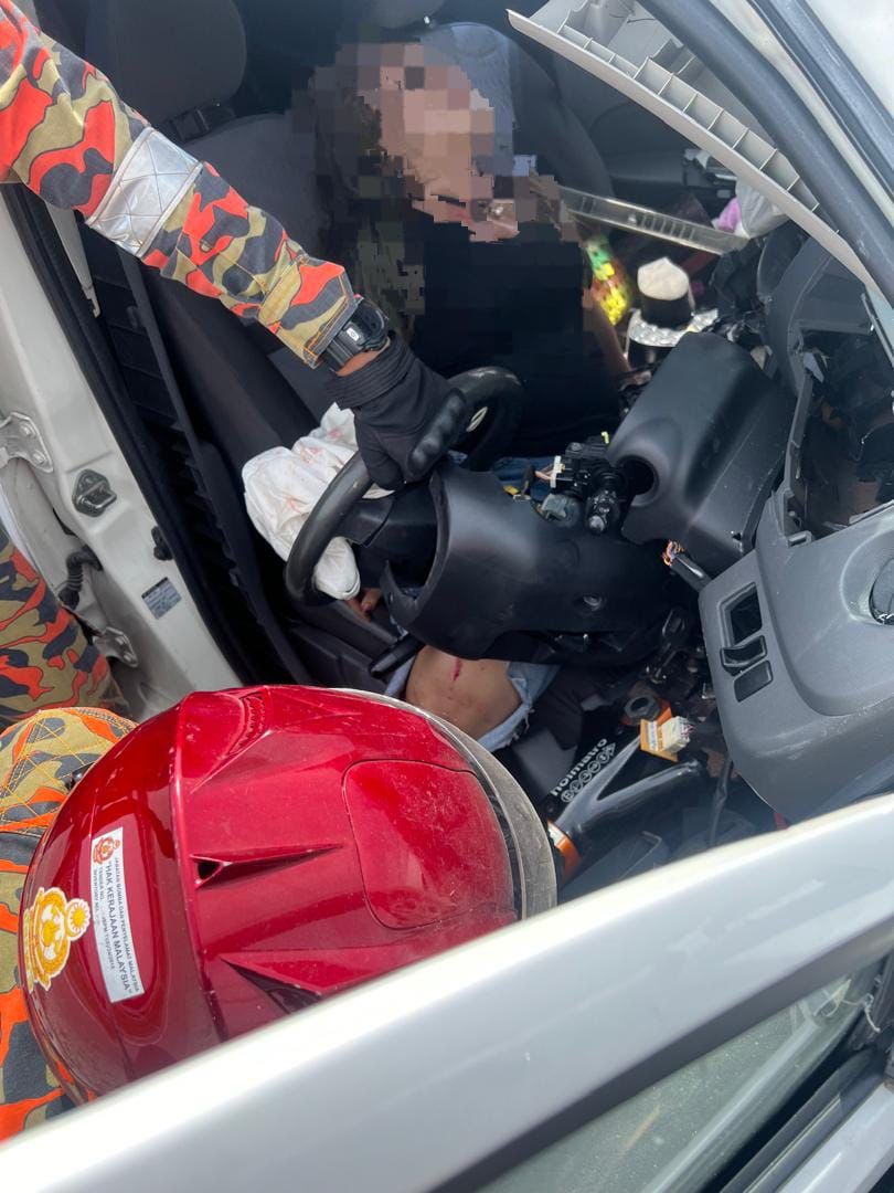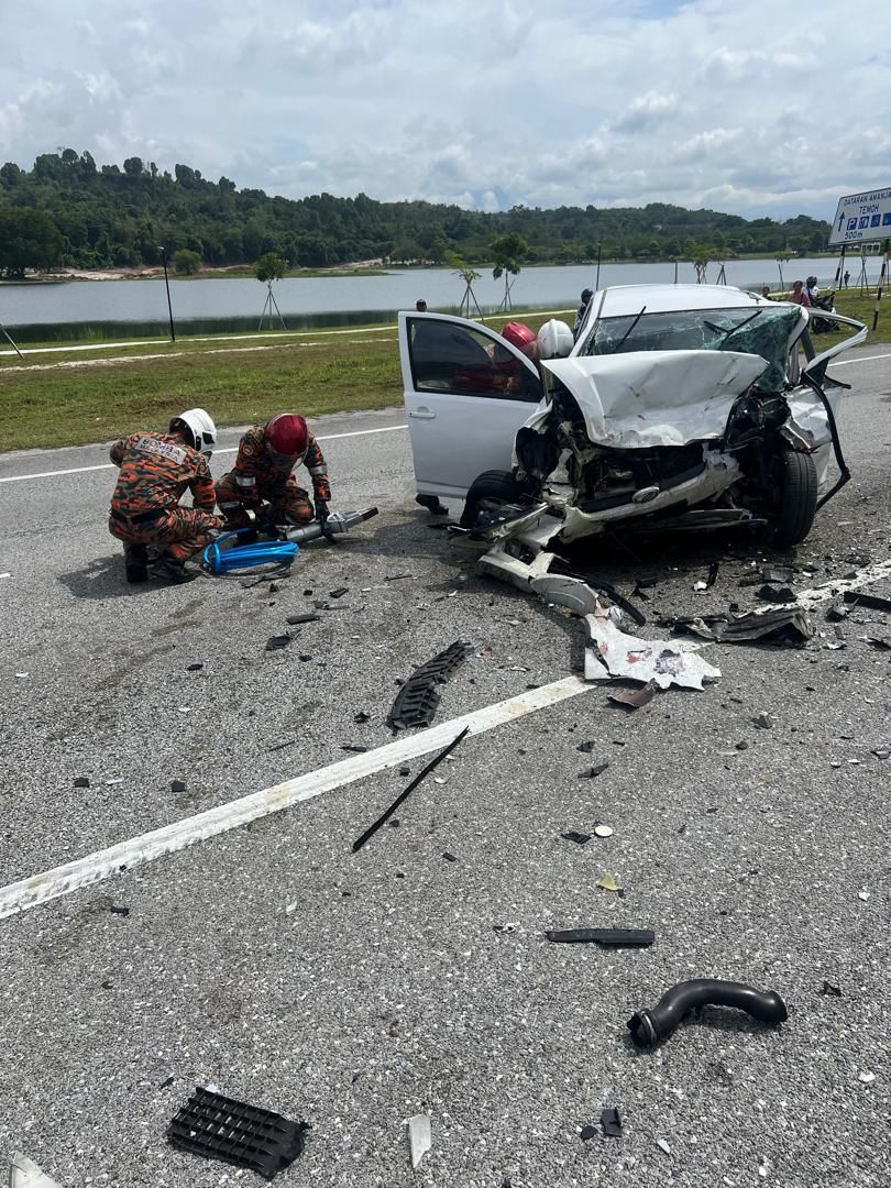 In the accident, two victims from a Toyota Estima multi-purpose vehicle (MPV) were injured, one from a Perodua Myvi was injured, while the victim from a Proton Saga was unscathed.
