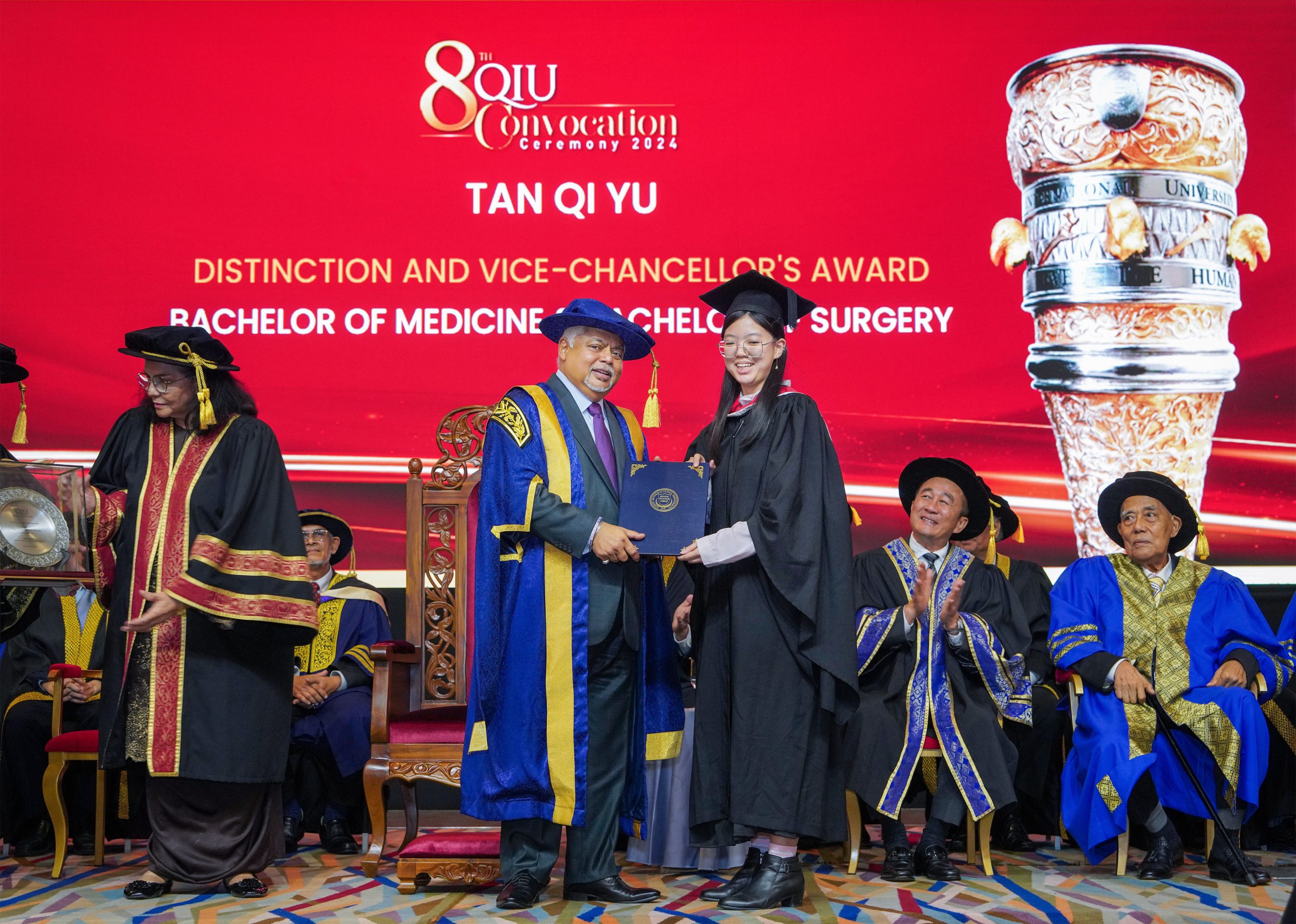 This year’s convocation saw over 600 graduates from six faculties, including the Faculty of Medicine, the Faculty of Pharmacy, the Faculty of Business and Management, the Faculty of Social Sciences, the Faculty of Computing and Engineering, and the Faculty of Integrated Life Sciences. Degrees were conferred by University Council Chairman and Pro-Chancellor Dato’ Sri Dr Vijay Eswaran, QIU Chancellor Tun Arifin Zakaria, and QIU Vice-Chancellor Professor Zita Mohd Fahmi.