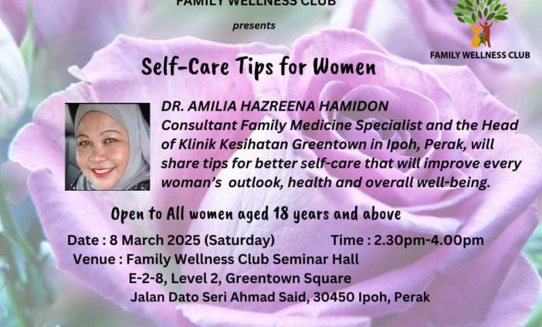 In this presentation, Dr. Amilia Hazreena Hamidon, the consultant family medicine specialist and head of Klinik Kesihatan Greentown in Ipoh, Perak, will share tips for better self-care that will improve every woman’s outlook, health and overall well-being.