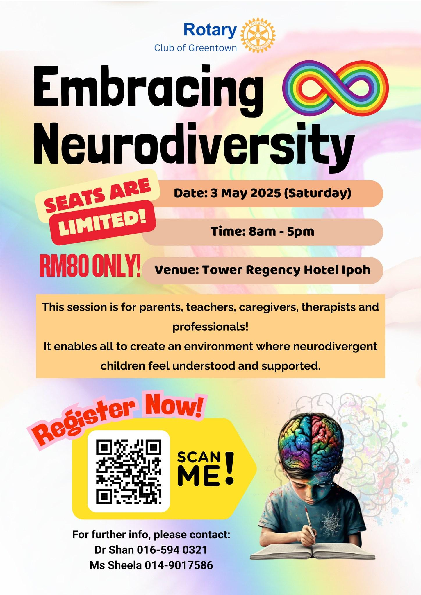 This May, the Rotary Club of Greentown invites you to “Embracing Neurodiversity”. It is a full-day seminar built on empathy, understanding, and evidence-based practices. This is also a movement to shift the way we see and support neurodivergent individuals, especially children.