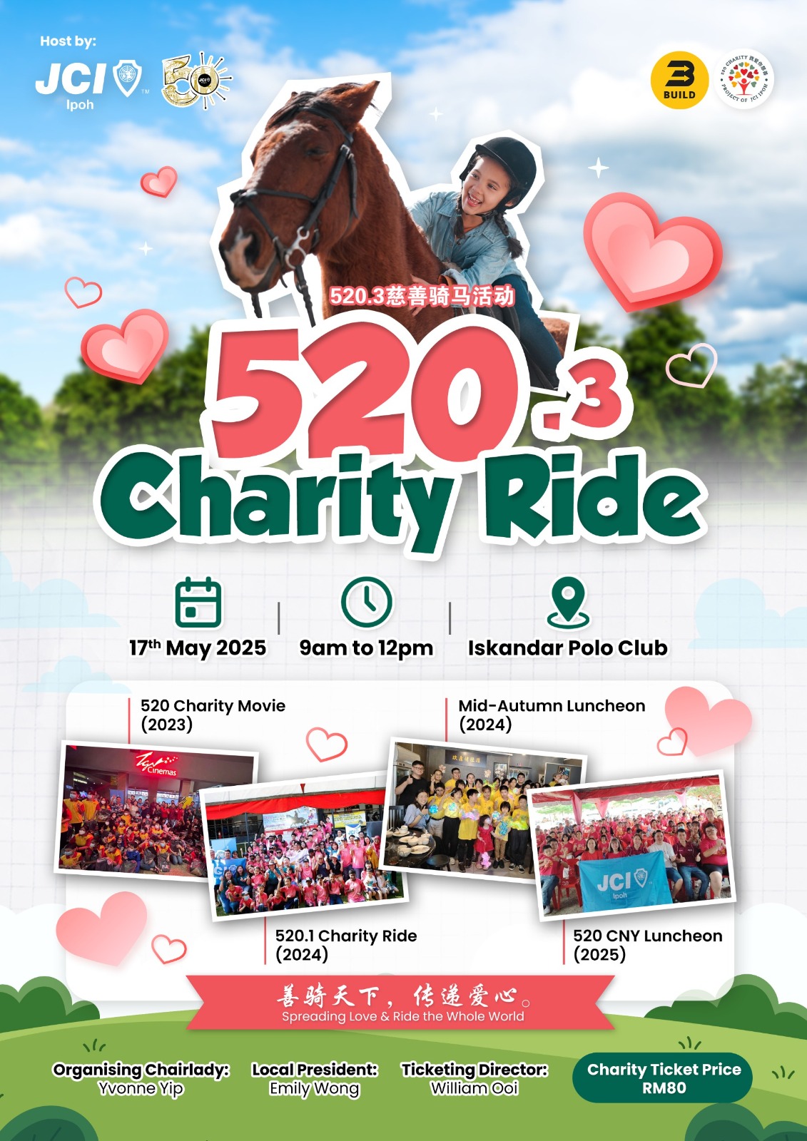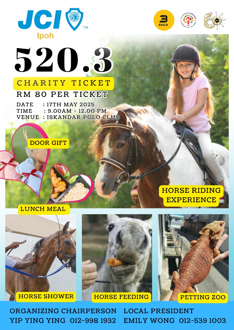 Following last year’s positive response, Junior Chambers International (JCI) Ipoh’s 520 charity event is coming back for the third time. As with last year, this year’s 520.3 Charity Ride will be a fun filled day, interacting with horses in assorted activities.